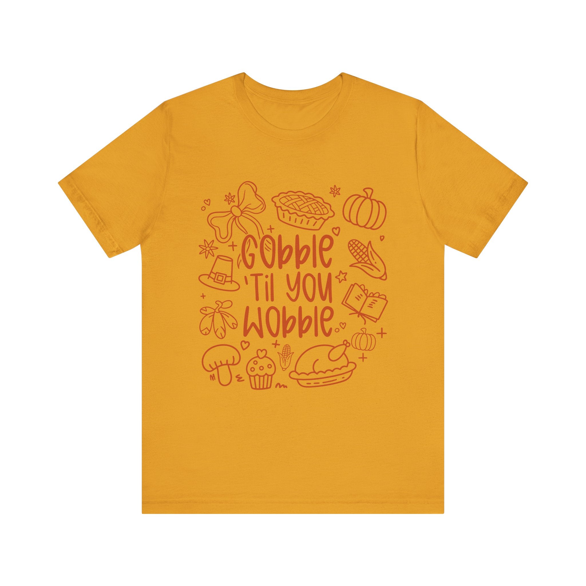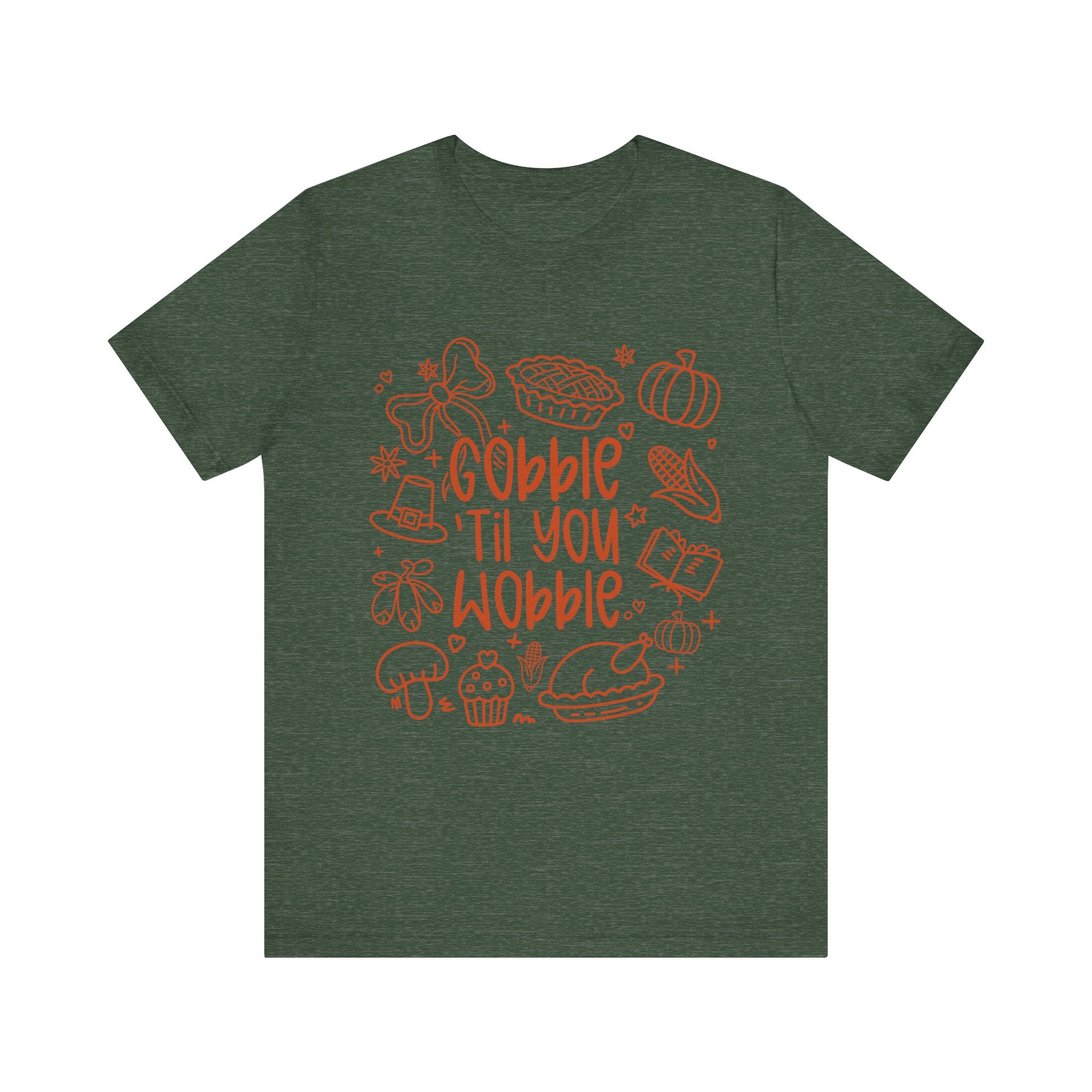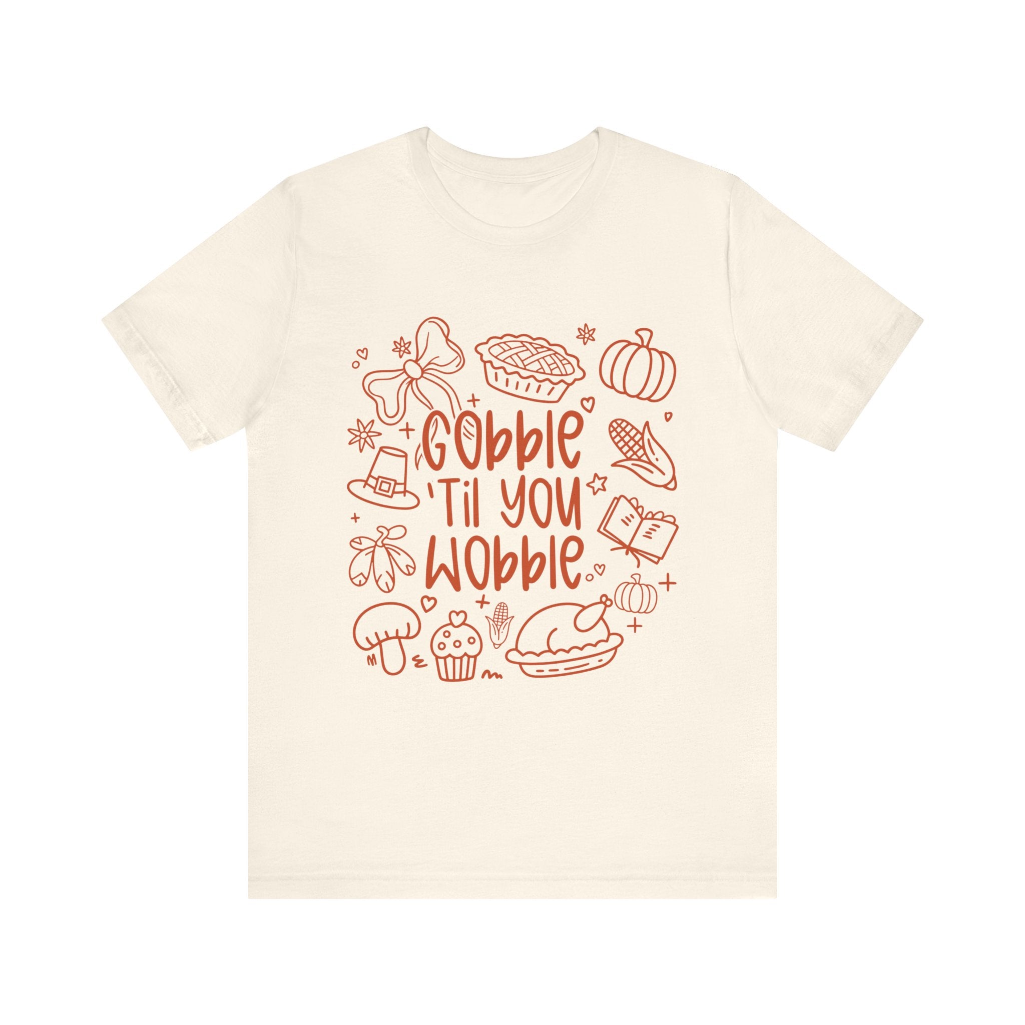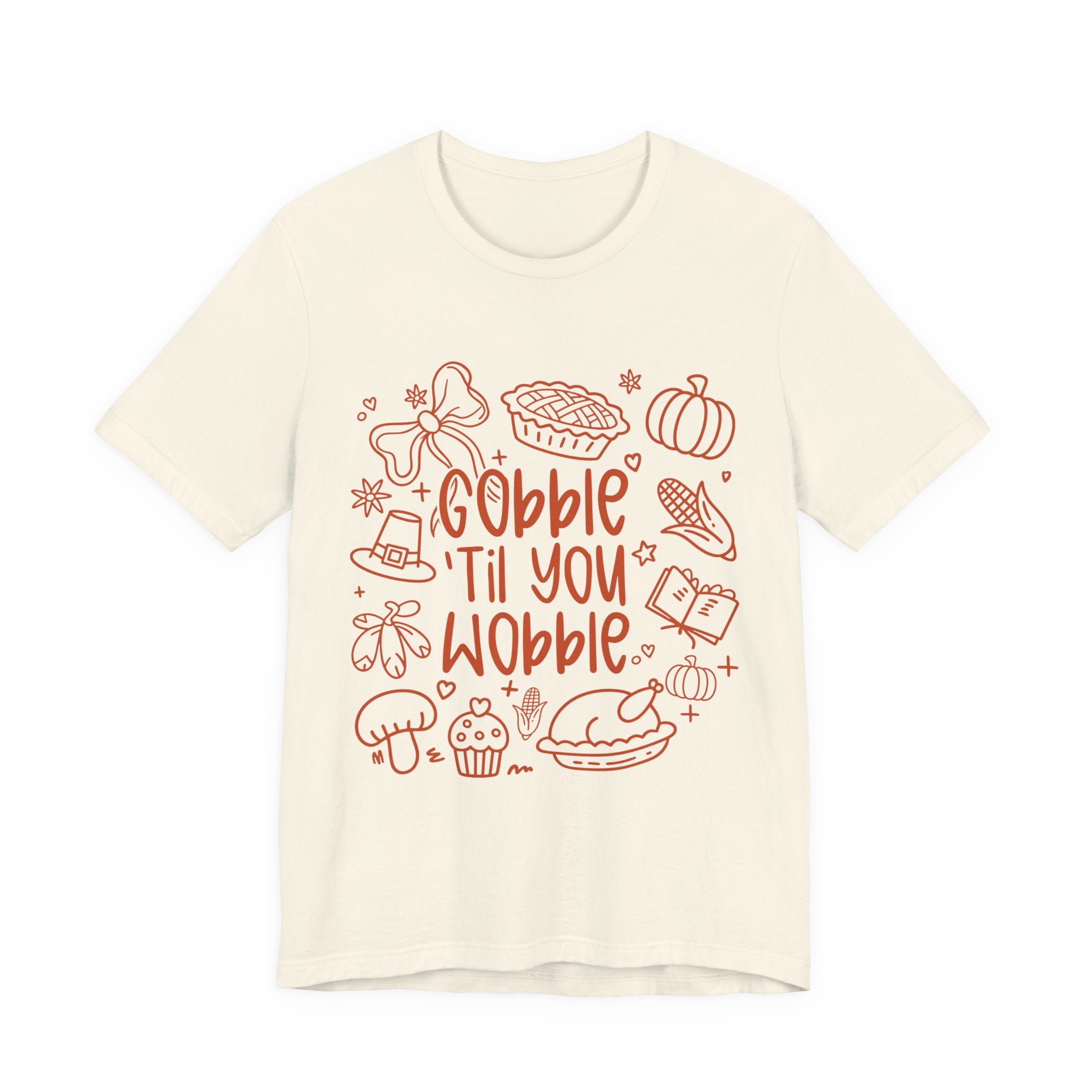 Thanksgiving Feast Short Sleeve Tee, Funny Thanksgiving Shirt, Gobble Til You Wobble Tee, Holiday Humor Tee, Family Dinner Clothing