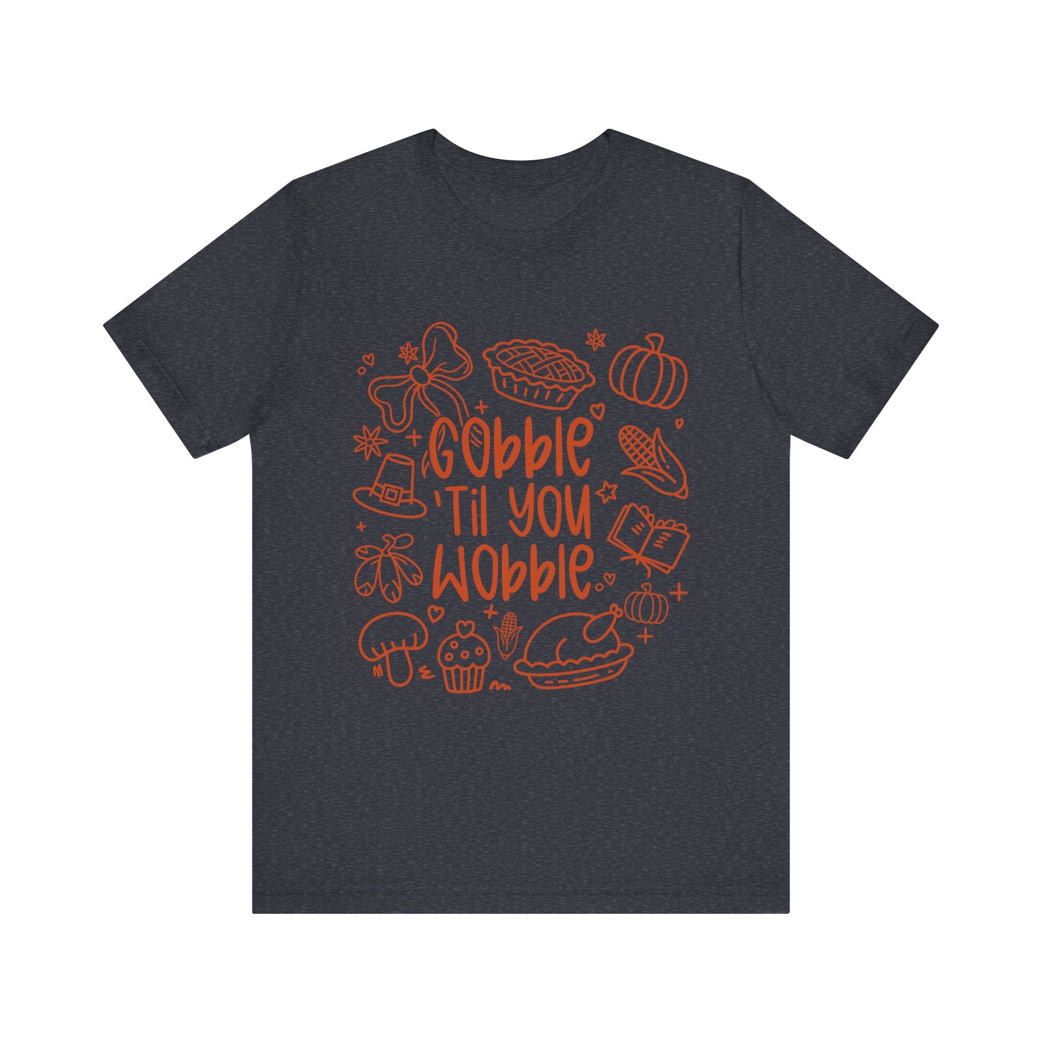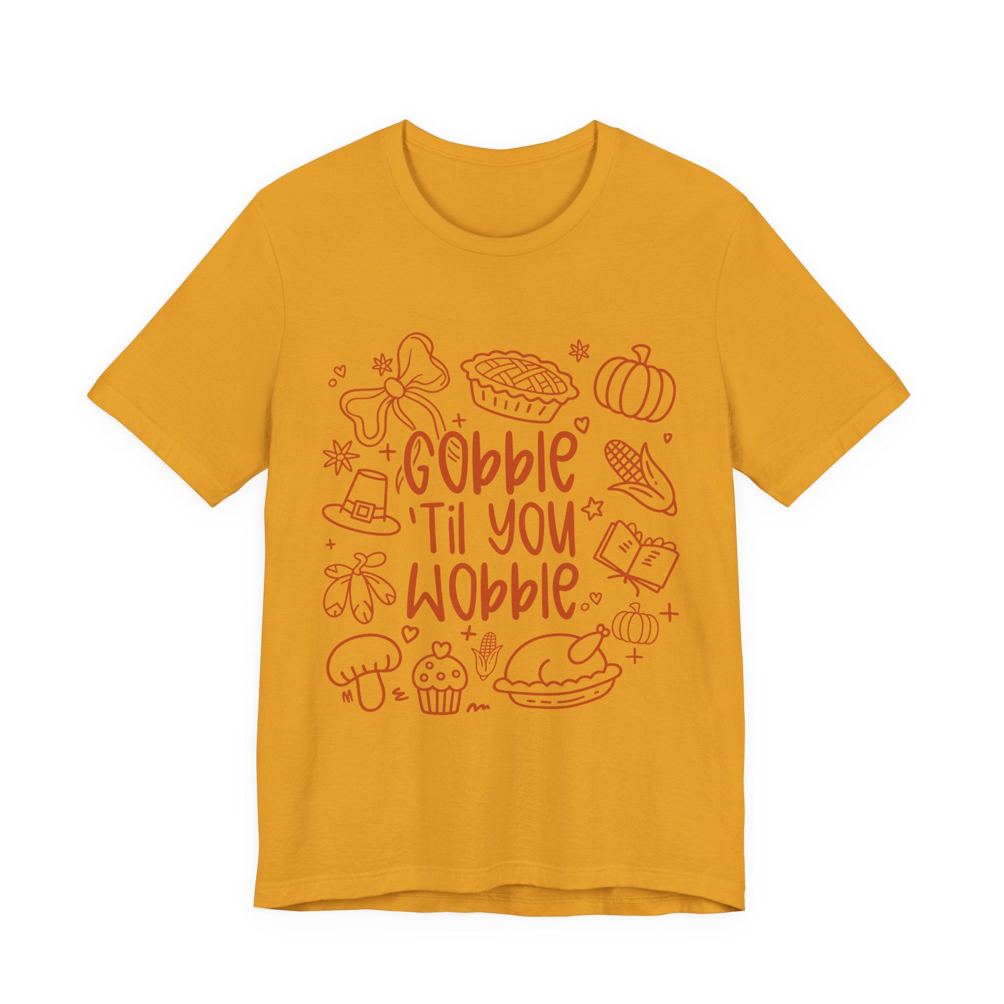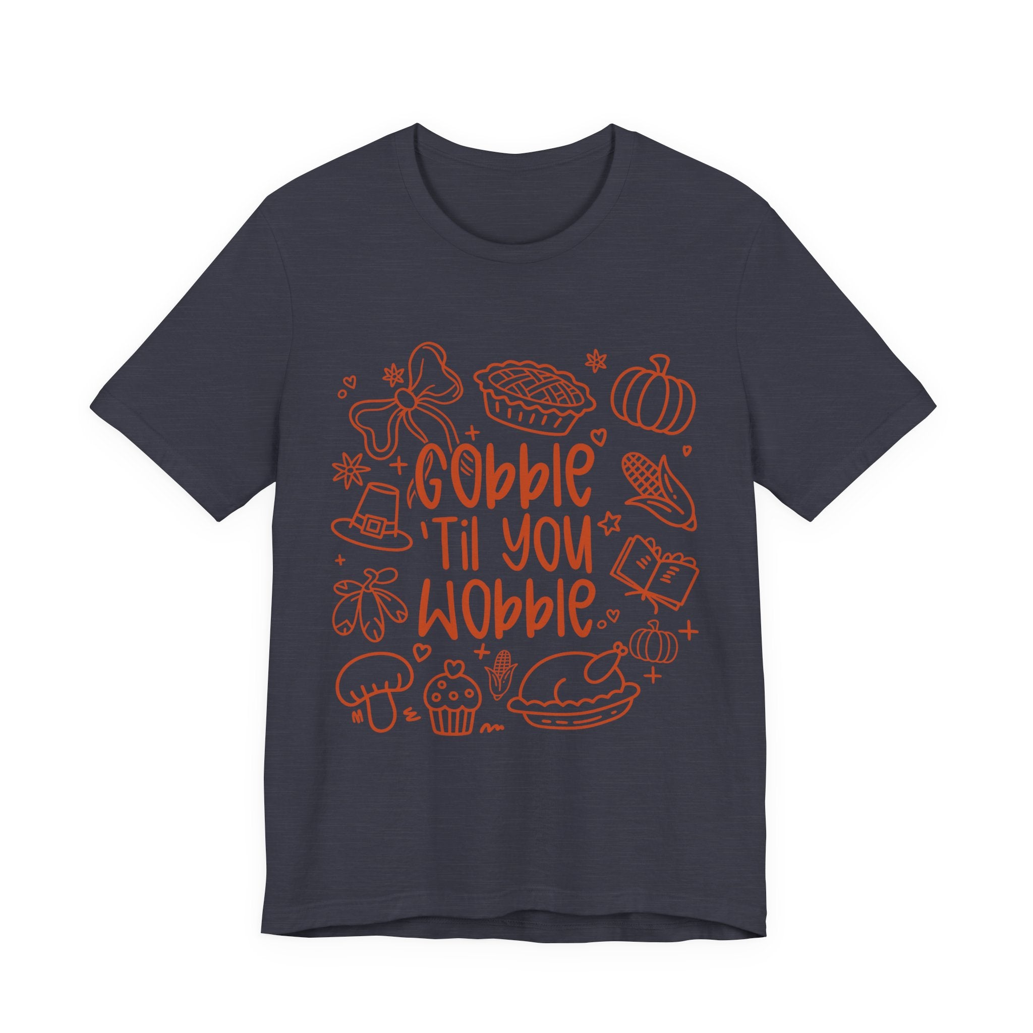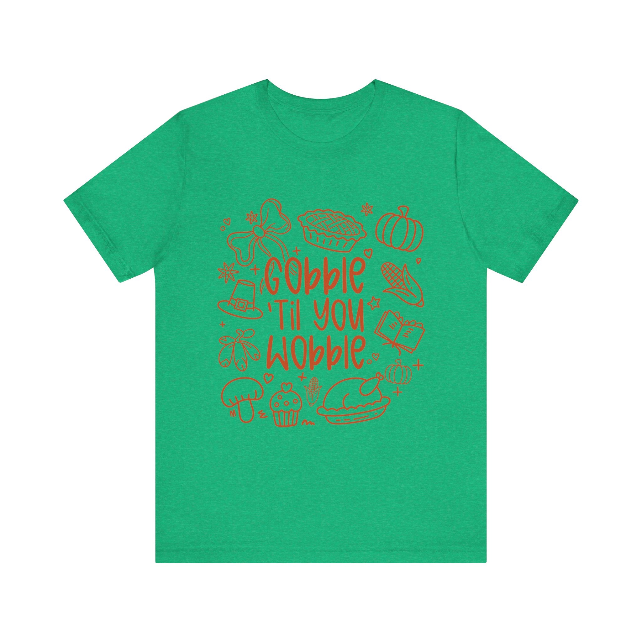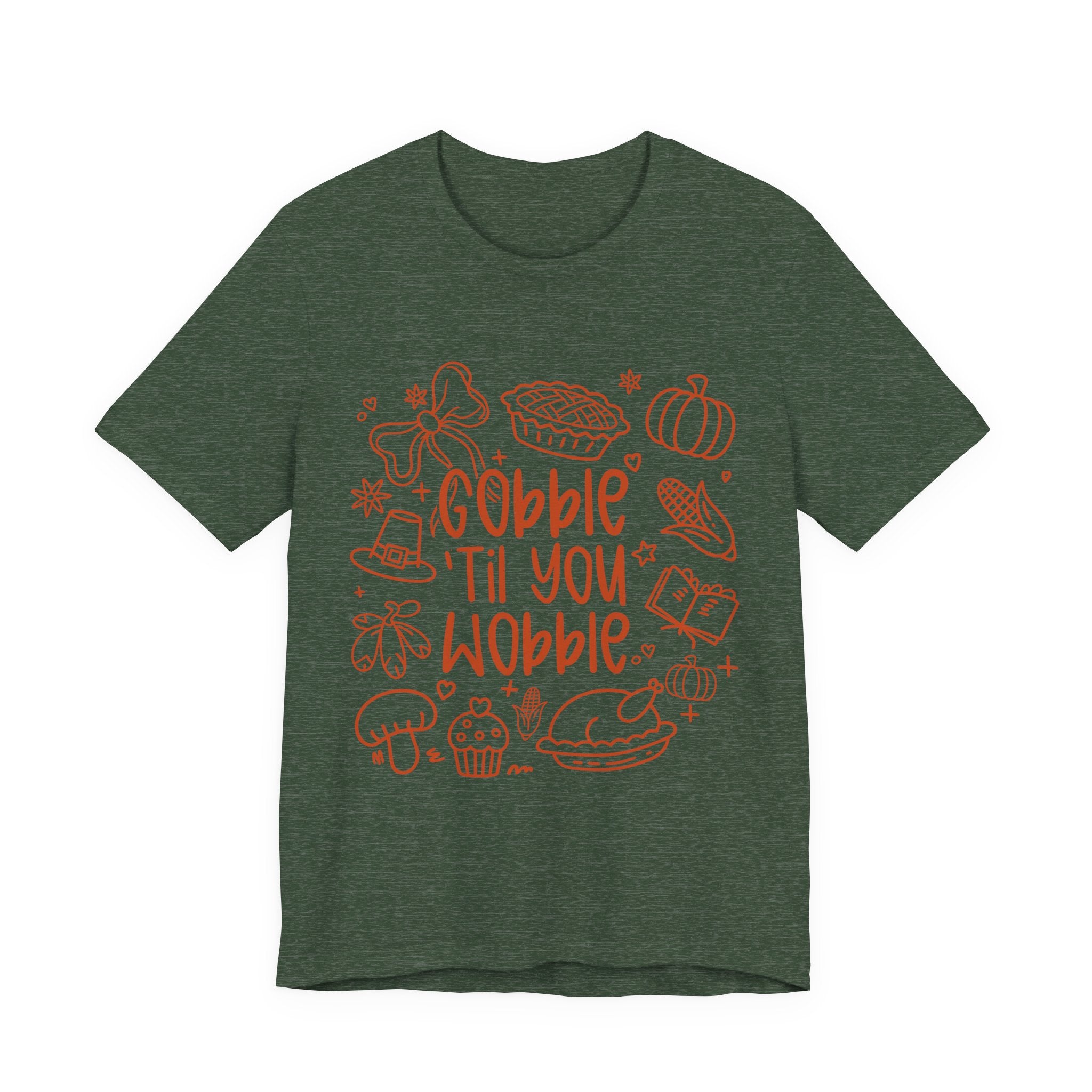 Thanksgiving Feast Short Sleeve Tee, Funny Thanksgiving Shirt, Gobble Til You Wobble Tee, Holiday Humor Tee, Family Dinner Clothing