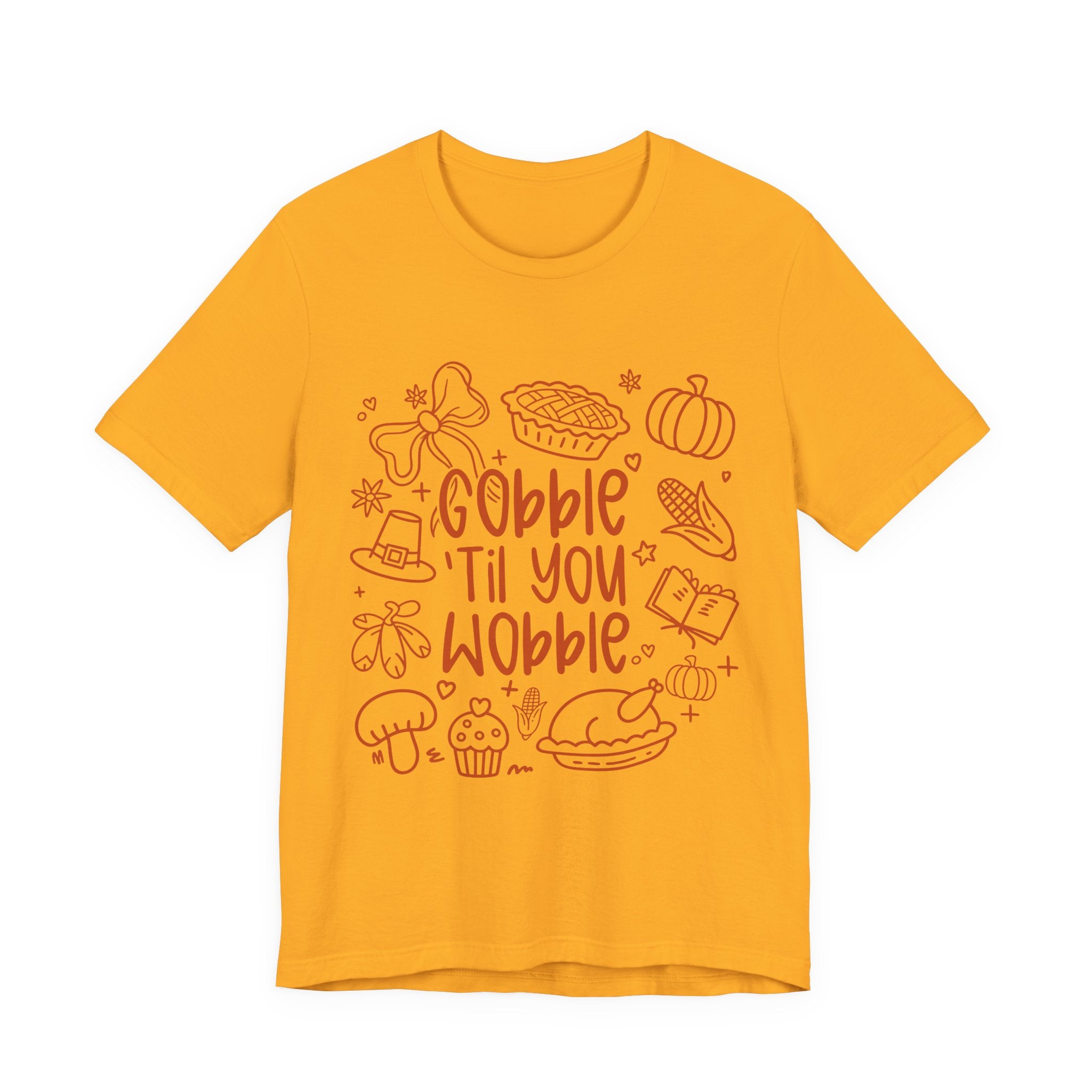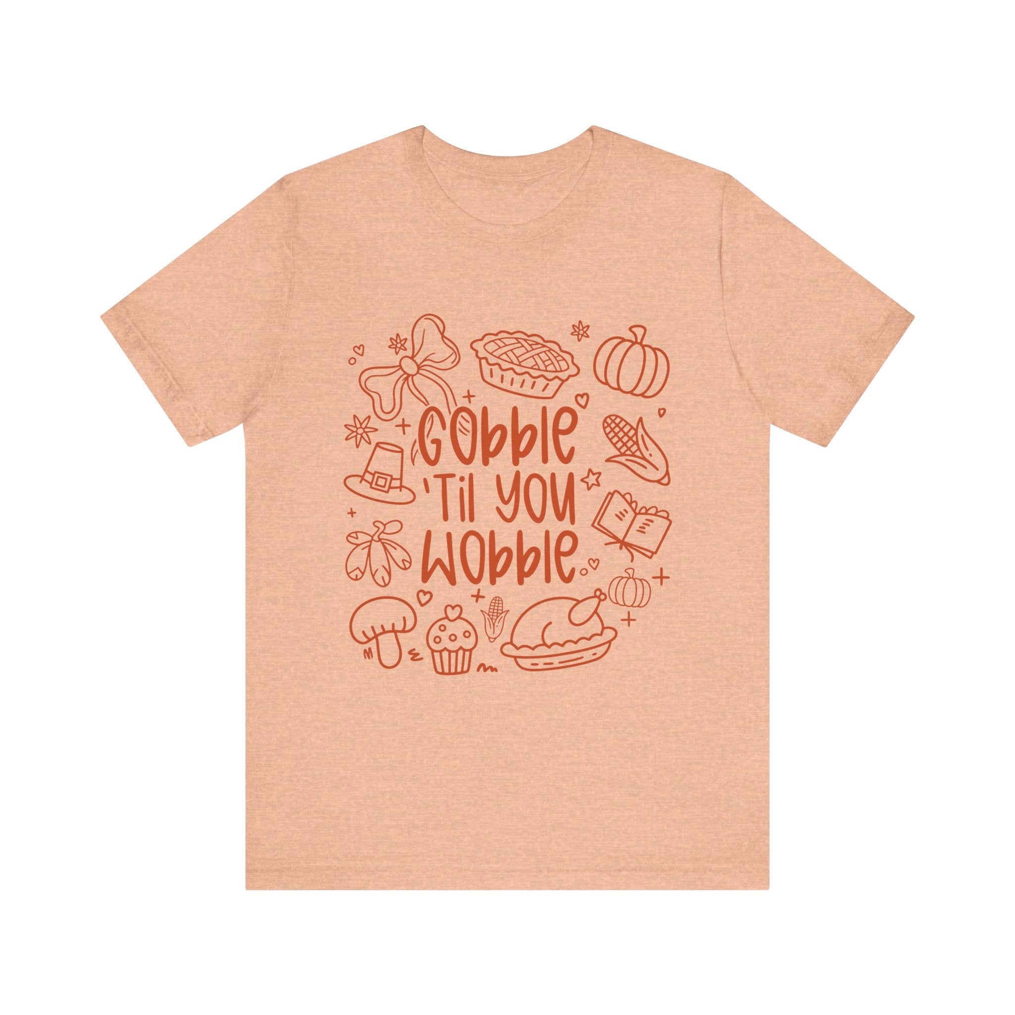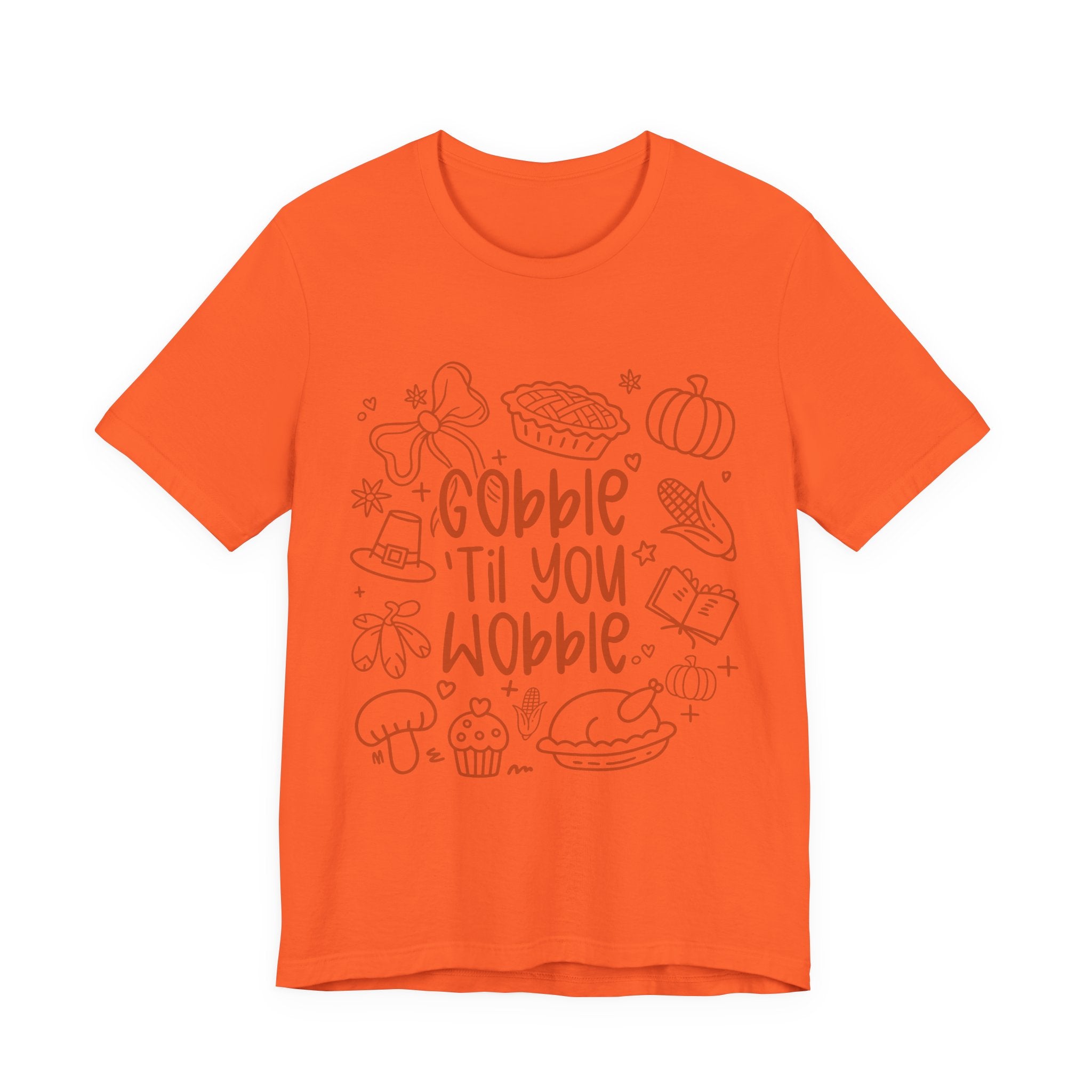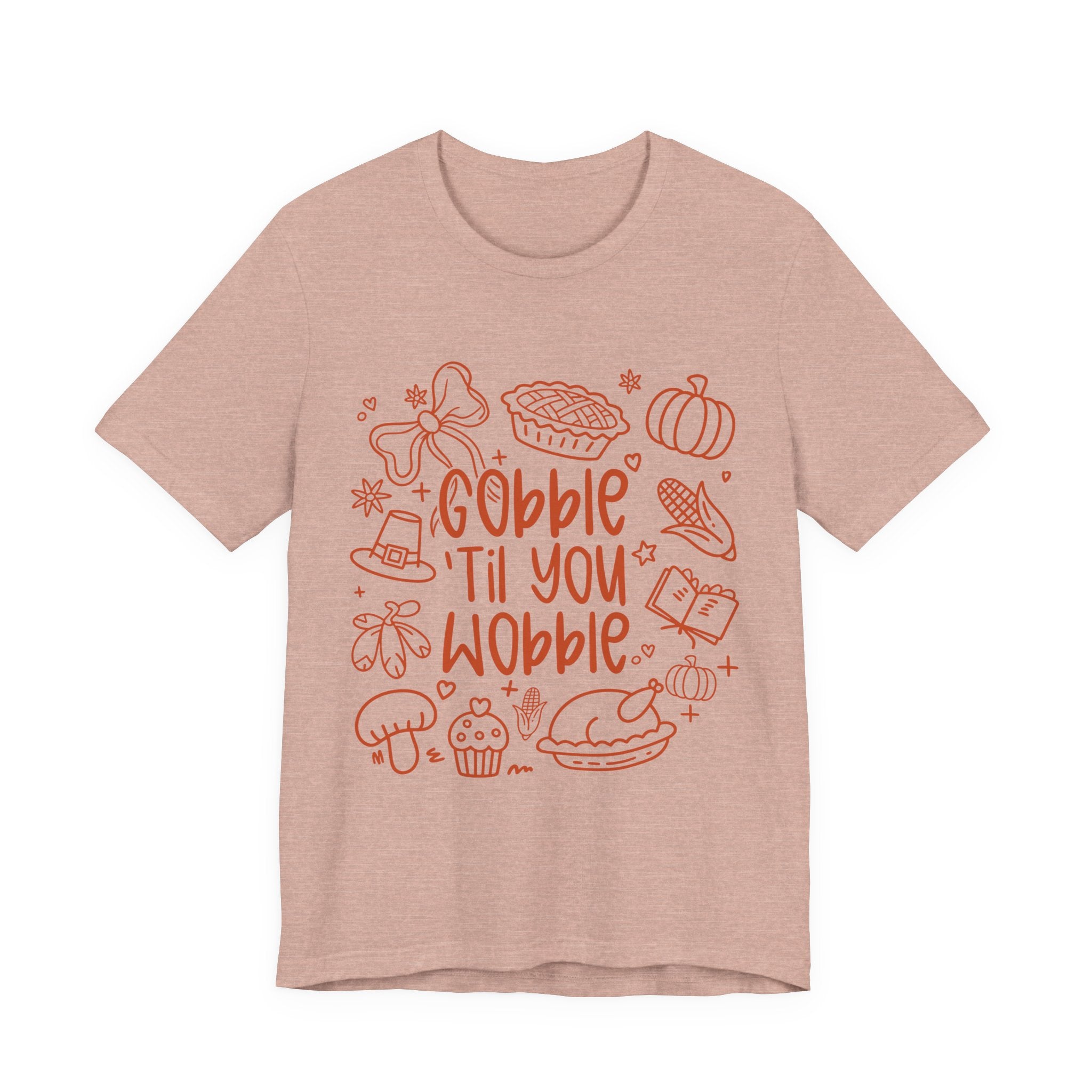 Thanksgiving Feast Short Sleeve Tee, Funny Thanksgiving Shirt, Gobble Til You Wobble Tee, Holiday Humor Tee, Family Dinner Clothing