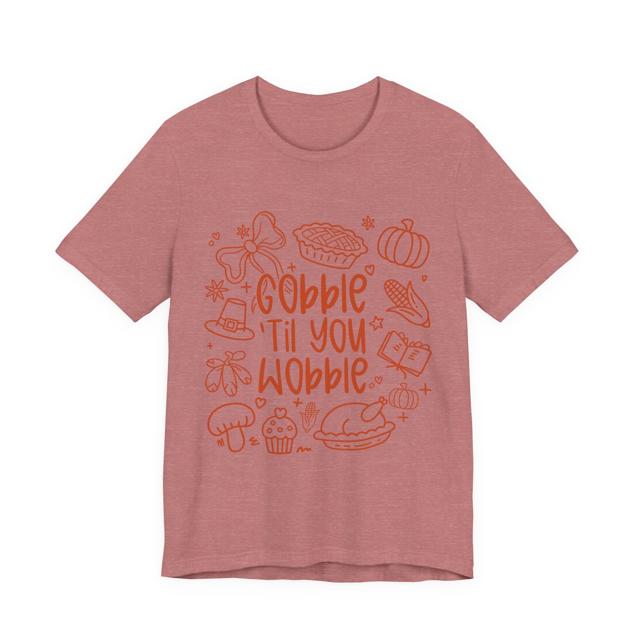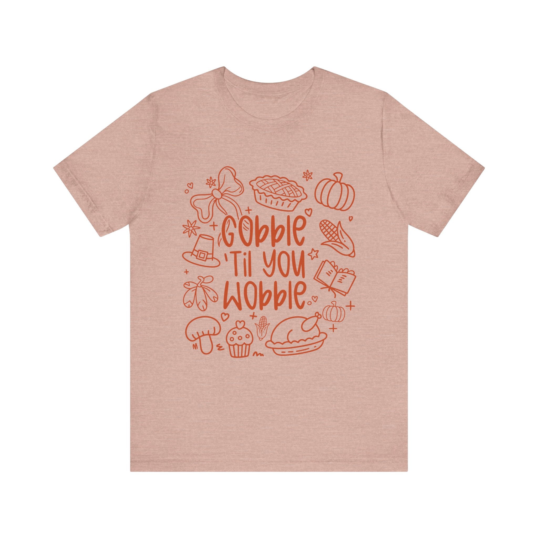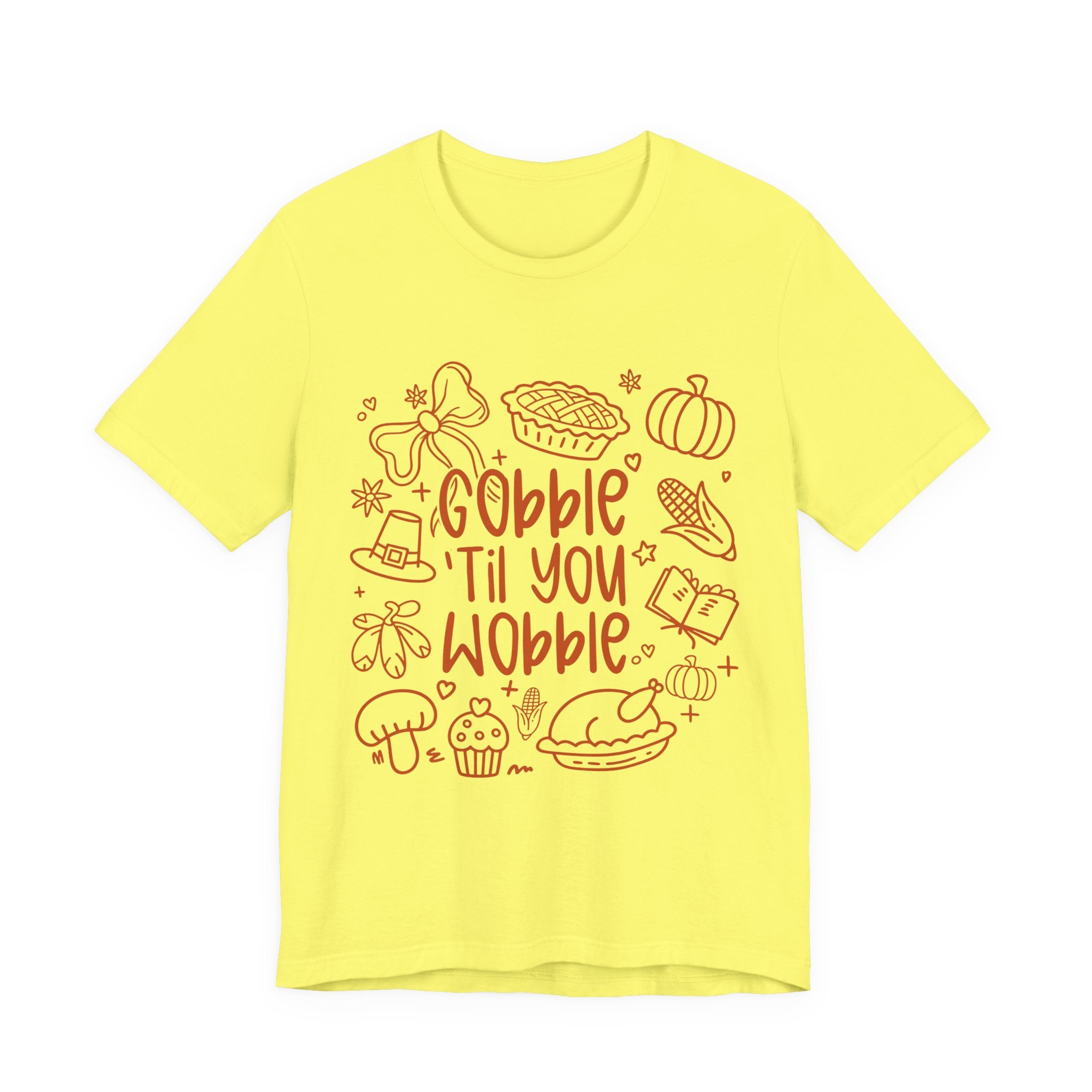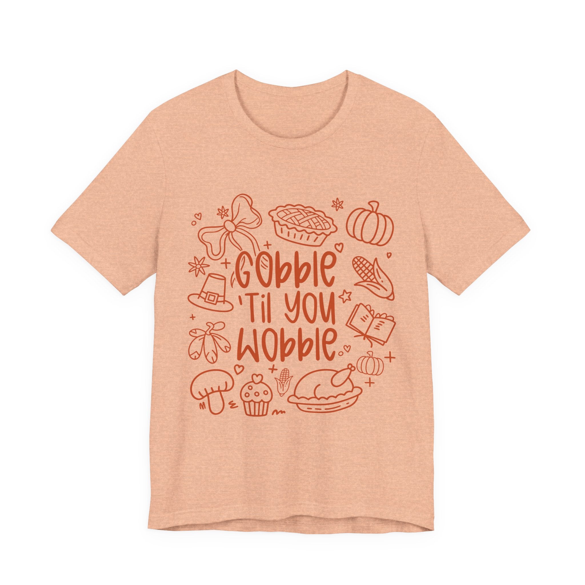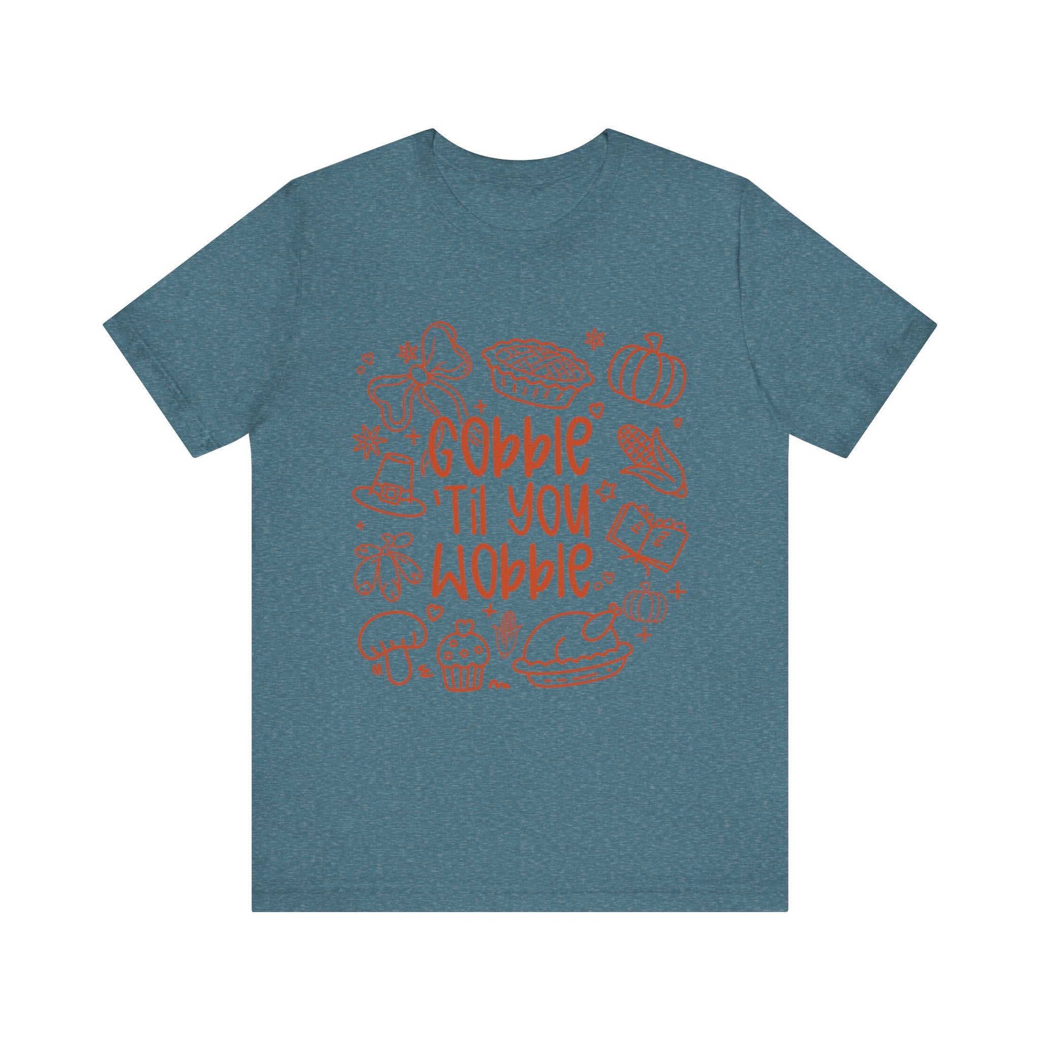 Thanksgiving Feast Short Sleeve Tee, Funny Thanksgiving Shirt, Gobble Til You Wobble Tee, Holiday Humor Tee, Family Dinner Clothing