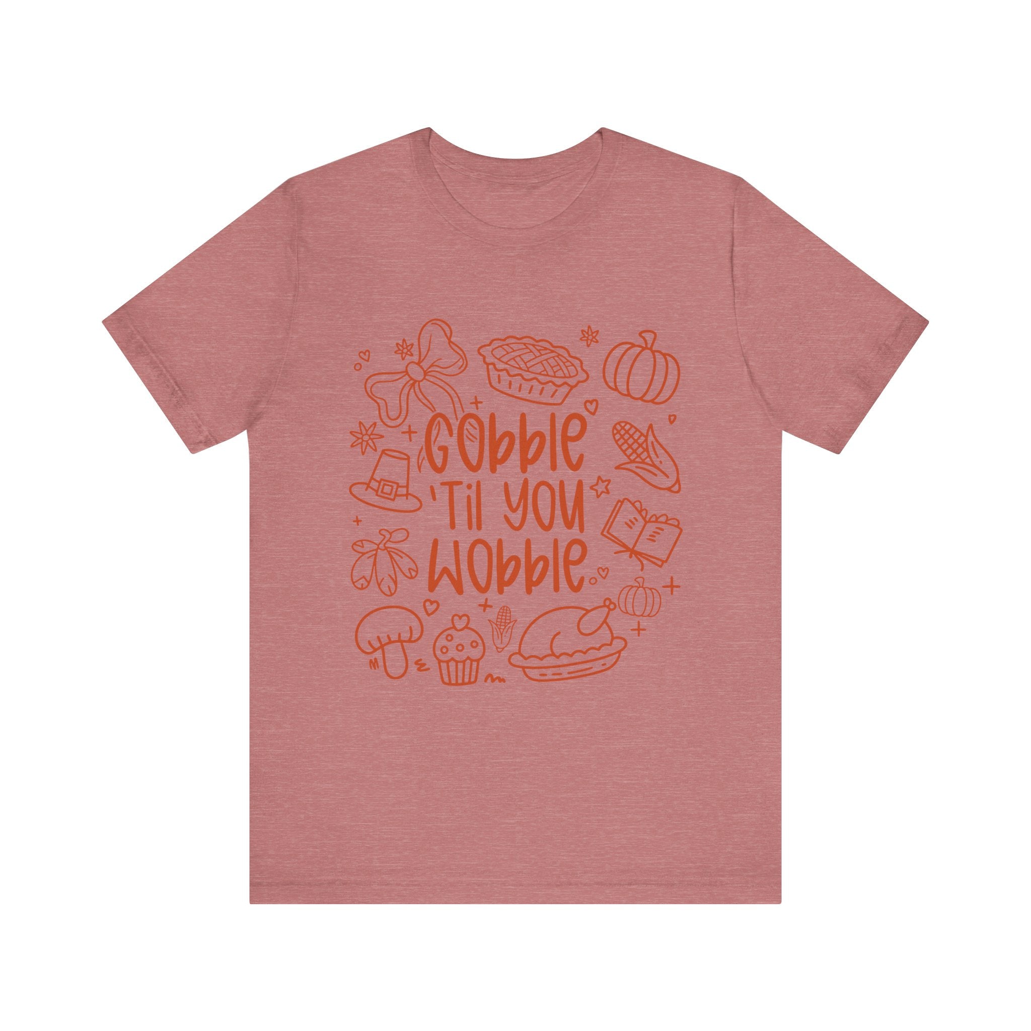 Celebrate the season with this charming Unisex Jersey Short Sleeve Tee, perfect for those cozy holiday gatherings. Featuring a playful "Gobble 'Til You Wobble" design, this tee encapsulates the warmth and fun of Thanksgiving. The lightweight, breathable fabric ensures all-day comfort, making it a great choice for both lounging at home and festive dinners with family and friends. Ideal for those who love to express their playful side while enjoying a relaxing vibe. This tee is perfect for adults looking to add a touch of humor to their holiday wardrobe or gift to someone special. It's a festive addition for Thanksgiving, family gatherings, or casual outings, bringing smiles and comfort to every occasion.