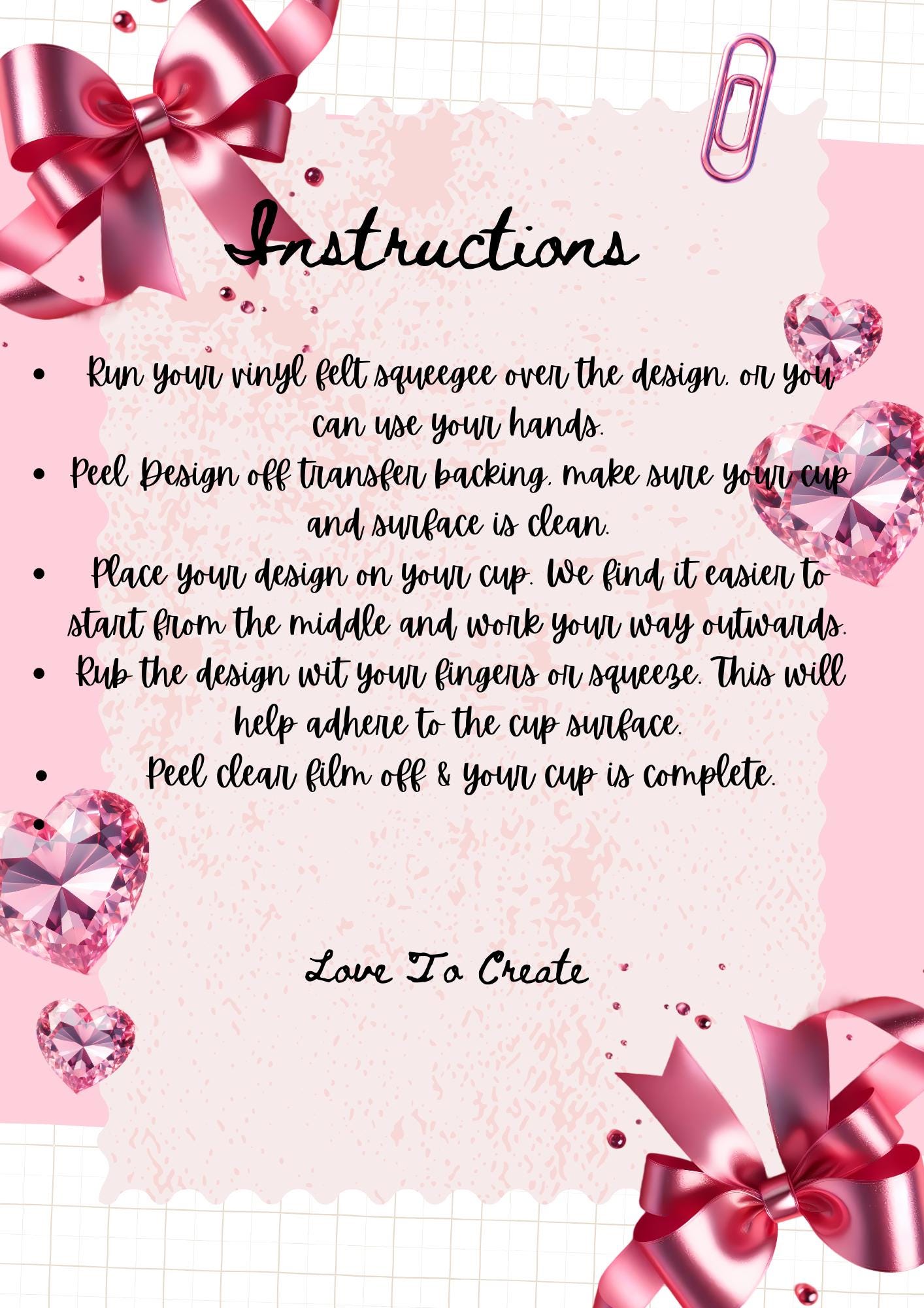 Place the transfer on the cup ensuring the design is straight and positioned correctly (Please note the adhesive is very strong and one it touches the glass, it cannot be removed)